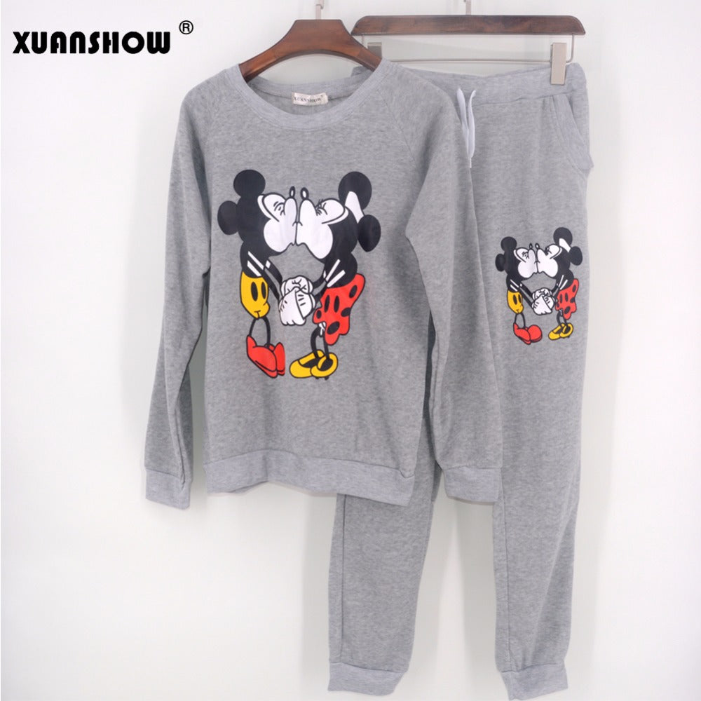 2017 Hot Selling Women Casual Sportswear Lovely Printed Hoodies long-sleeved Suit Kawayi Tenue Femme Sportswear Sets women