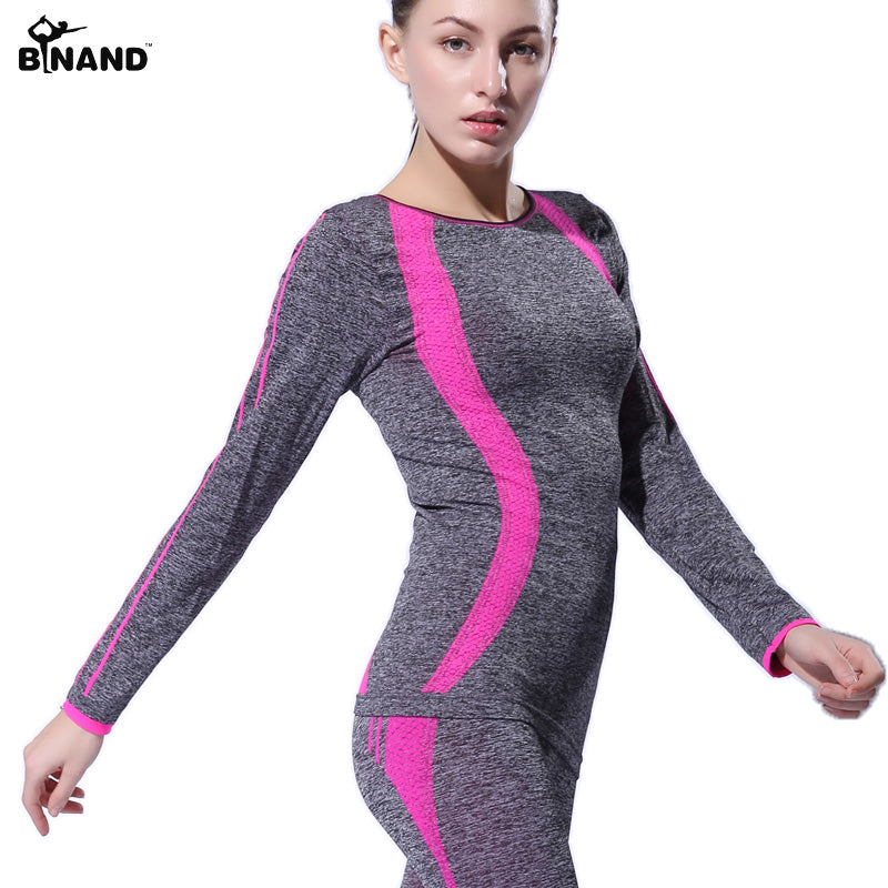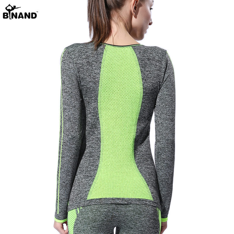 BINAND Women Slim Yoga sports long Sleeves Shirt High Elastic Training Running Exercise Slim Stretch Soft Sports Yoga Tops women
