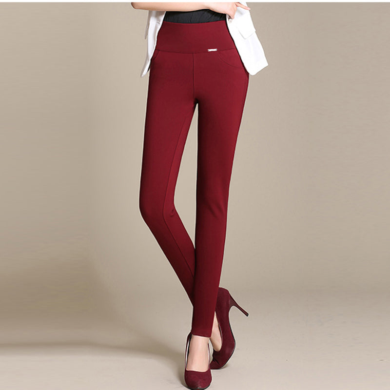 {Guoran}2017 Winter pants women Office Thick Warm Fleece High Waist pencil pants Stretch black White trousers Plus Size Leggings women
