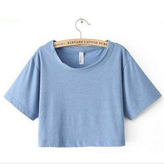 2016 Harajuku T Shirt Women Casual Fitness Crop Top Hot Sale 6 Color Sexy Cropped Top Casual Women T-Shirt Plain Loose Crop Tops