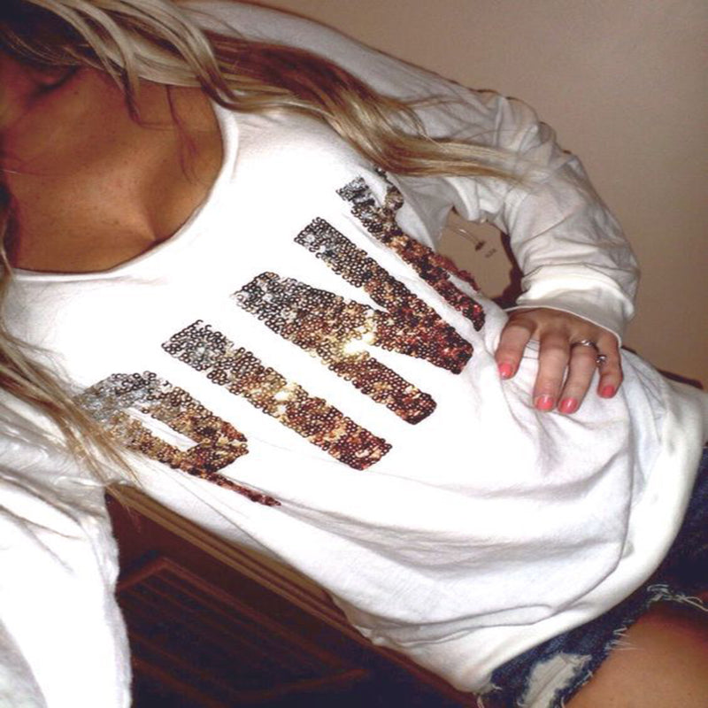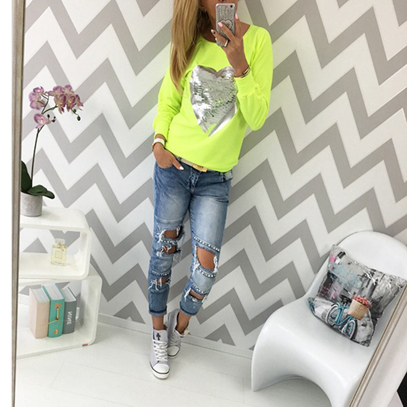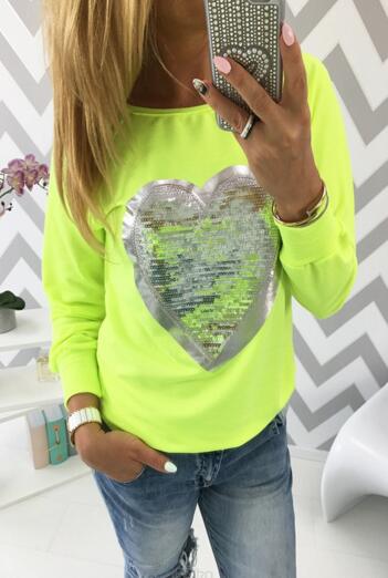 2017 Fashion Autumn t shirt women heart sequin top round neck heart shape blusa long sleeve woman shirts tops ladies tshirts tee women