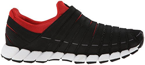 - Laceless cross-trainer featuring synthetic suede straps layered over mesh with hook-and-loop closure